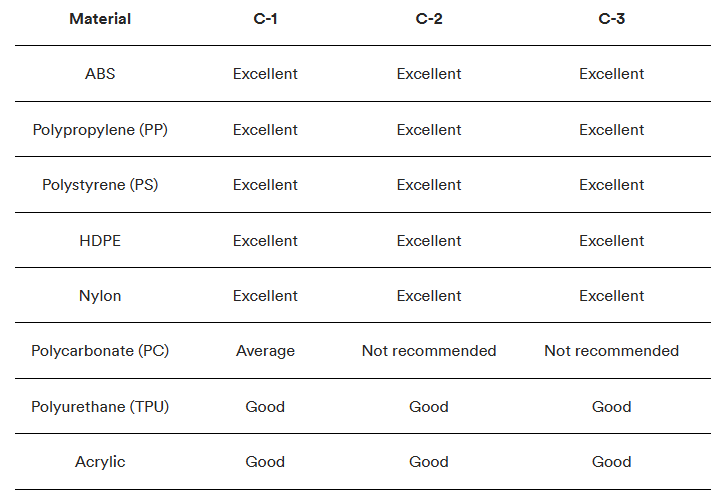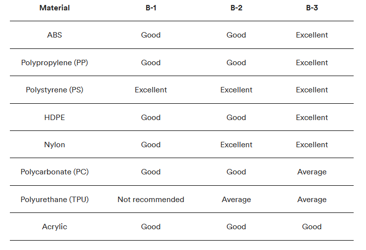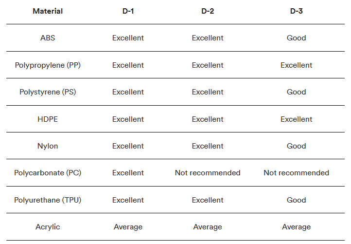 Le finiture di superficie/stampo SPI producono risultati diversi a seconda del materiale utilizzato per i componenti dello stampaggio a iniezione. Le tabelle seguenti descrivono in dettaglio come selezionare la finitura e i materiali dello stampo giusti per la vostra applicazione specifica.